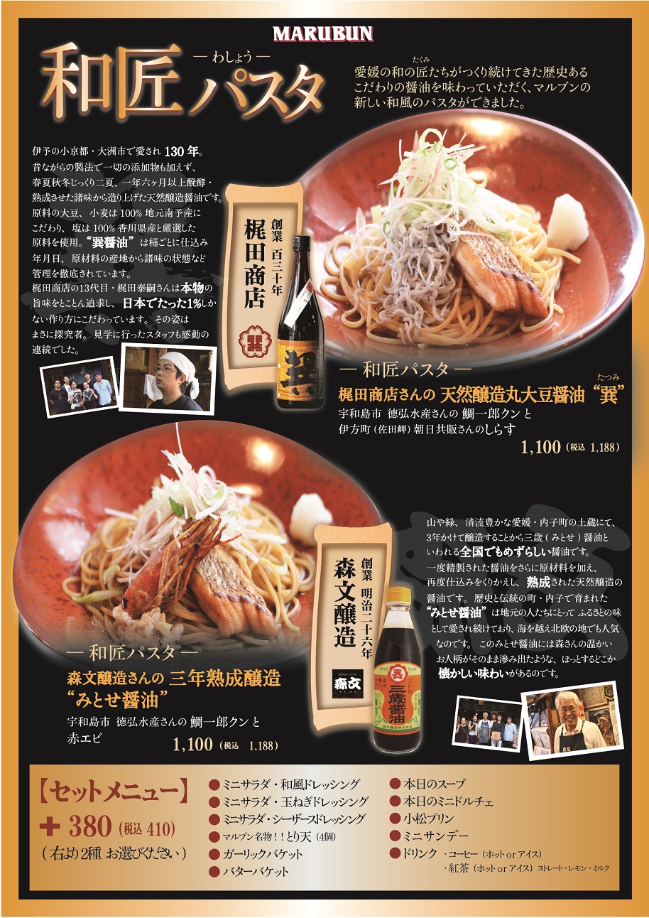 写真の 和匠(わしょう)パスタ、ハマるなぁ。