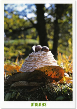 このモンブランにも使っている、店裏の栗の木の下で撮影。